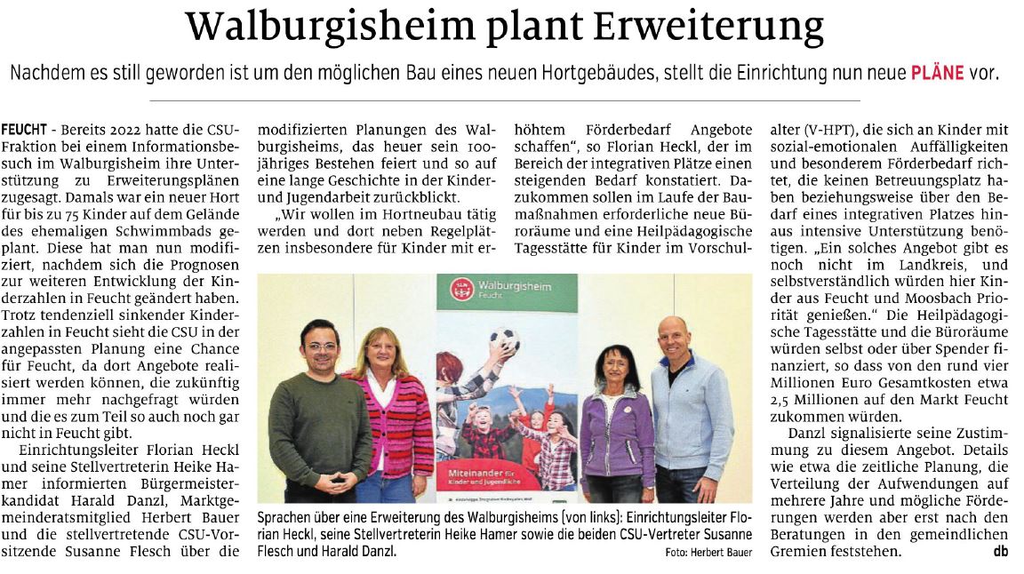 Das Walburgisheim Feucht – eine Einrichtung in Trägerschaft der Stiftung SLW Altötting – unterstützt als Zentrum für Kinder- und Jugendhilfe Familien im Nürnberger Land und darüber hinaus. Unser Ziel ist es, Kinder und Jugendliche mit all ihren Kompetenzen und Herausforderungen optimal zu fördern und ihnen eine zweite Heimat zu bieten.